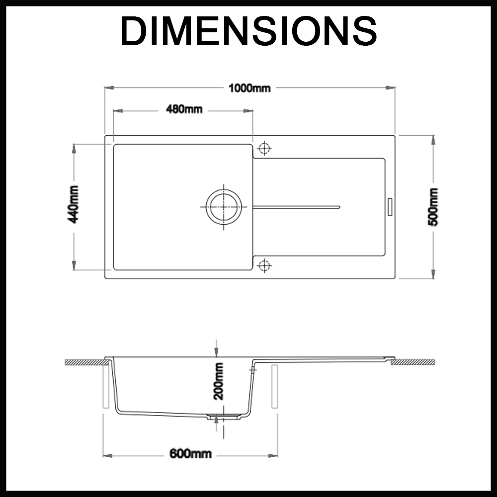 - Sink Dimensions: 480mm x 440mm x 200mm (WxDxH)