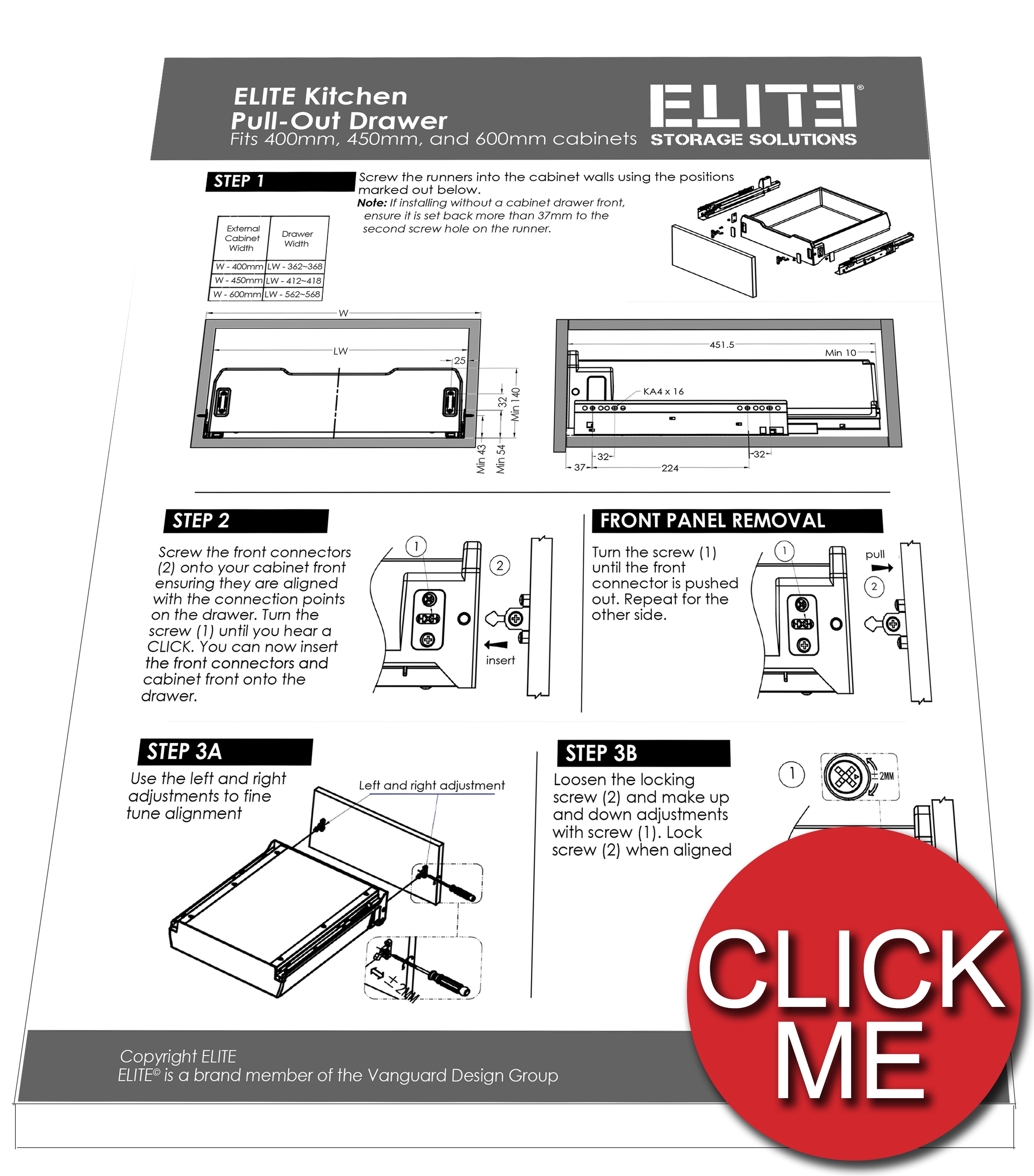 The ELITE 600mm pull-out drawer kitchen organiser system is designed to fit a standard 600mm wide cupboard space. Use it to conveniently organise your cupboard spaces, leaving your cupboards clutter-free and items more accessible.